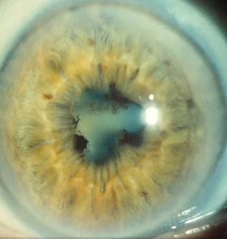 L’inflammation peut parfois provoquer une déformation de la pupille par des adhérences entre l’iris et le cristallin (synéchies irido-cristalliniennes)